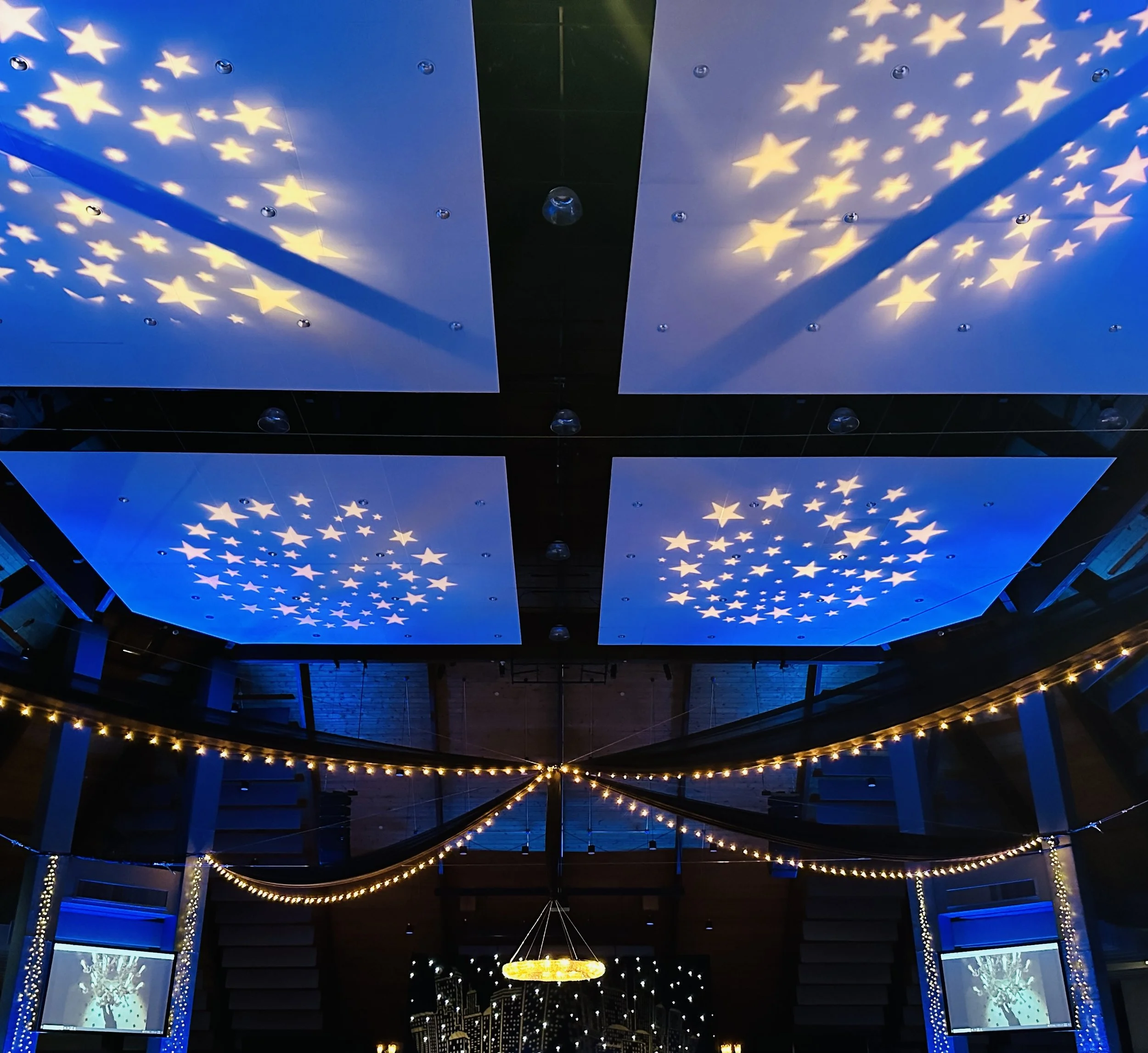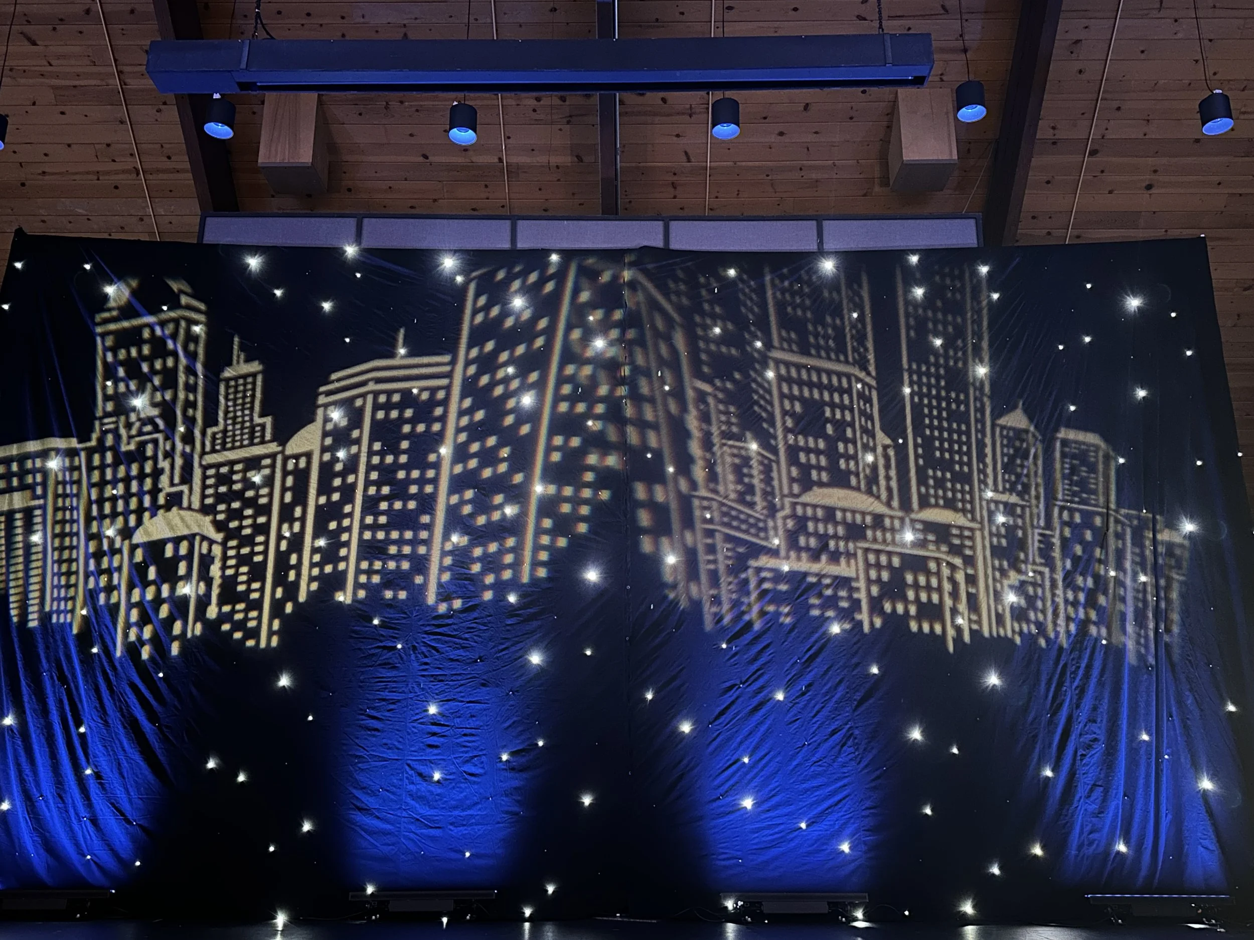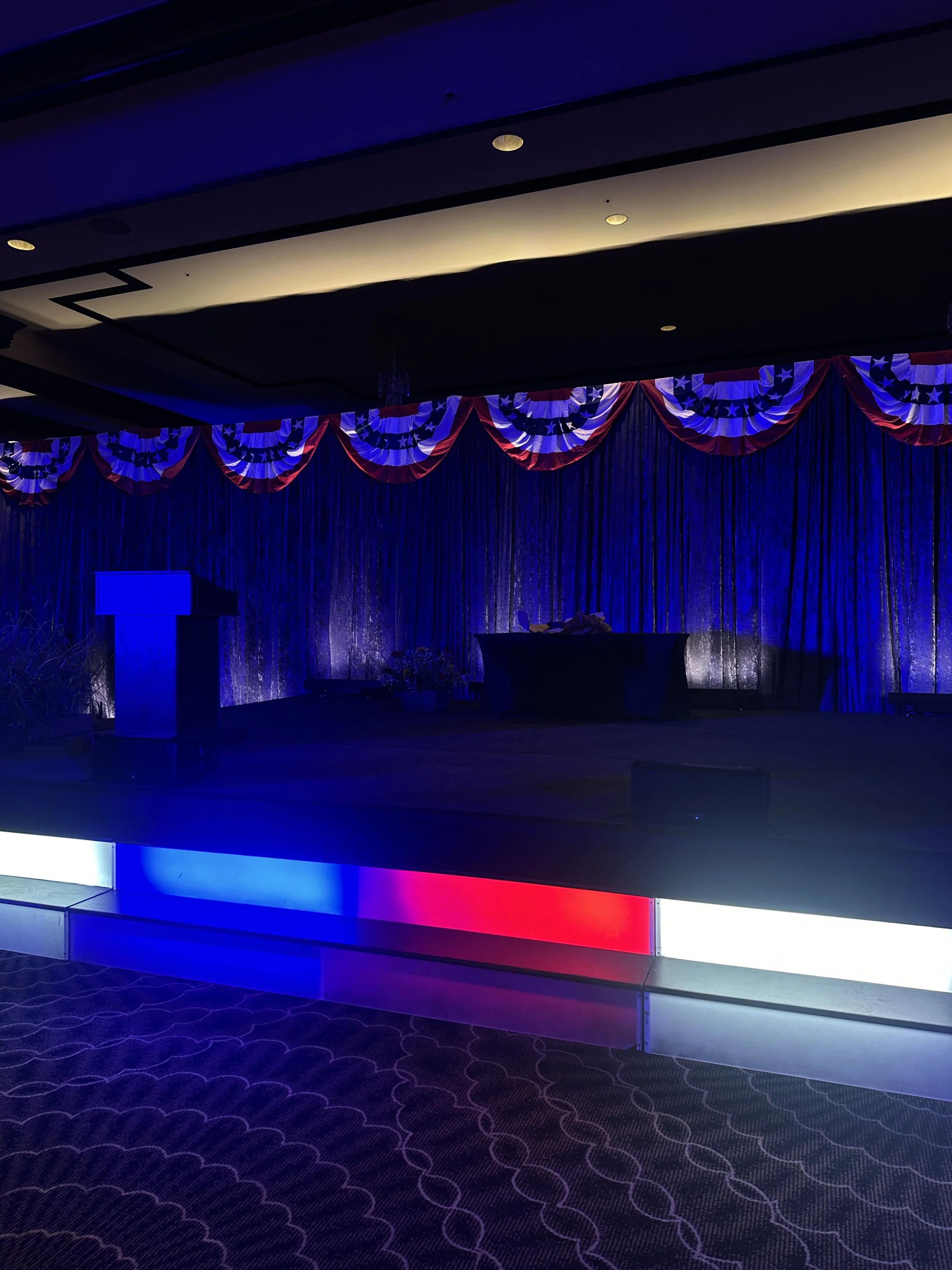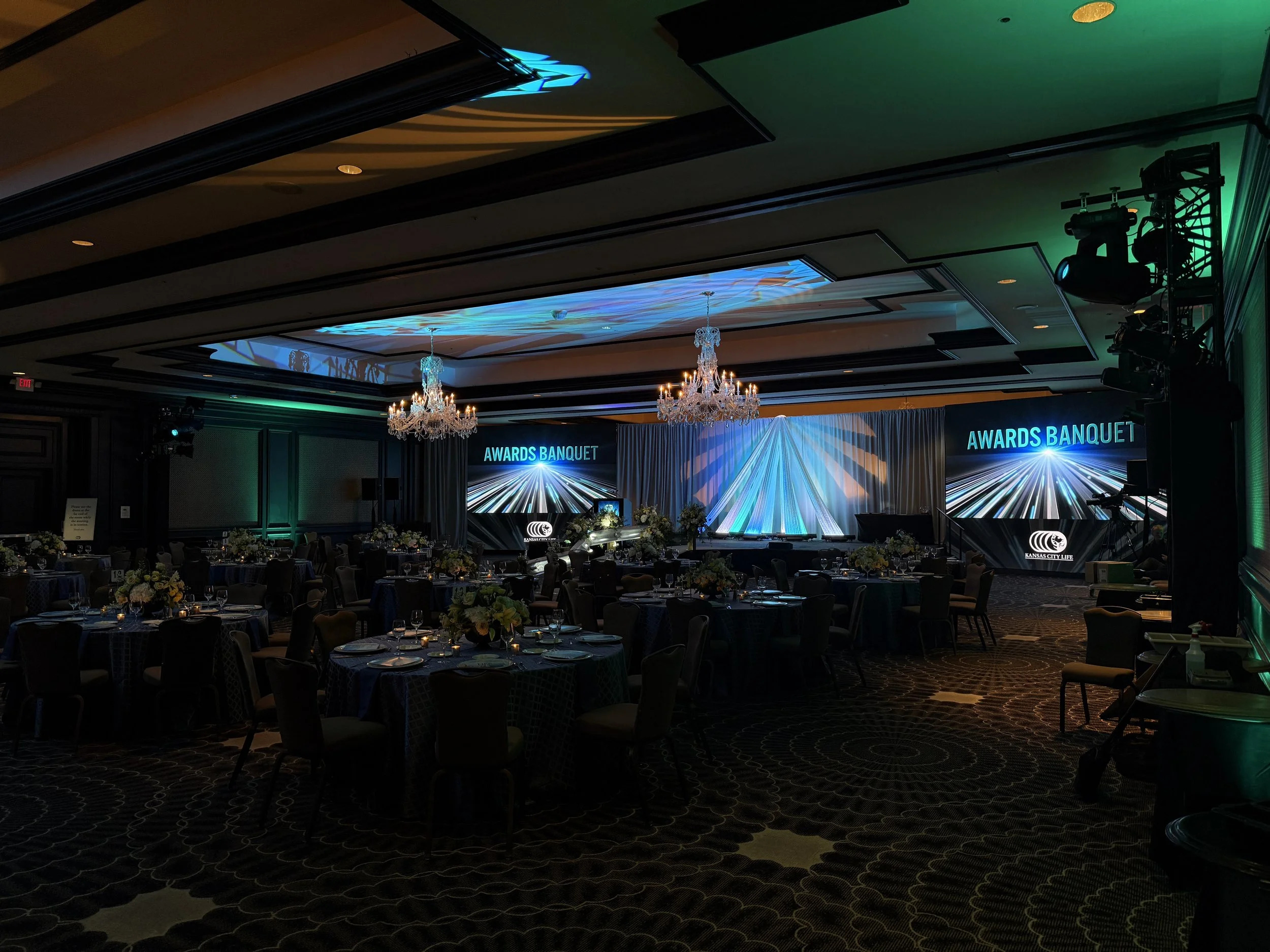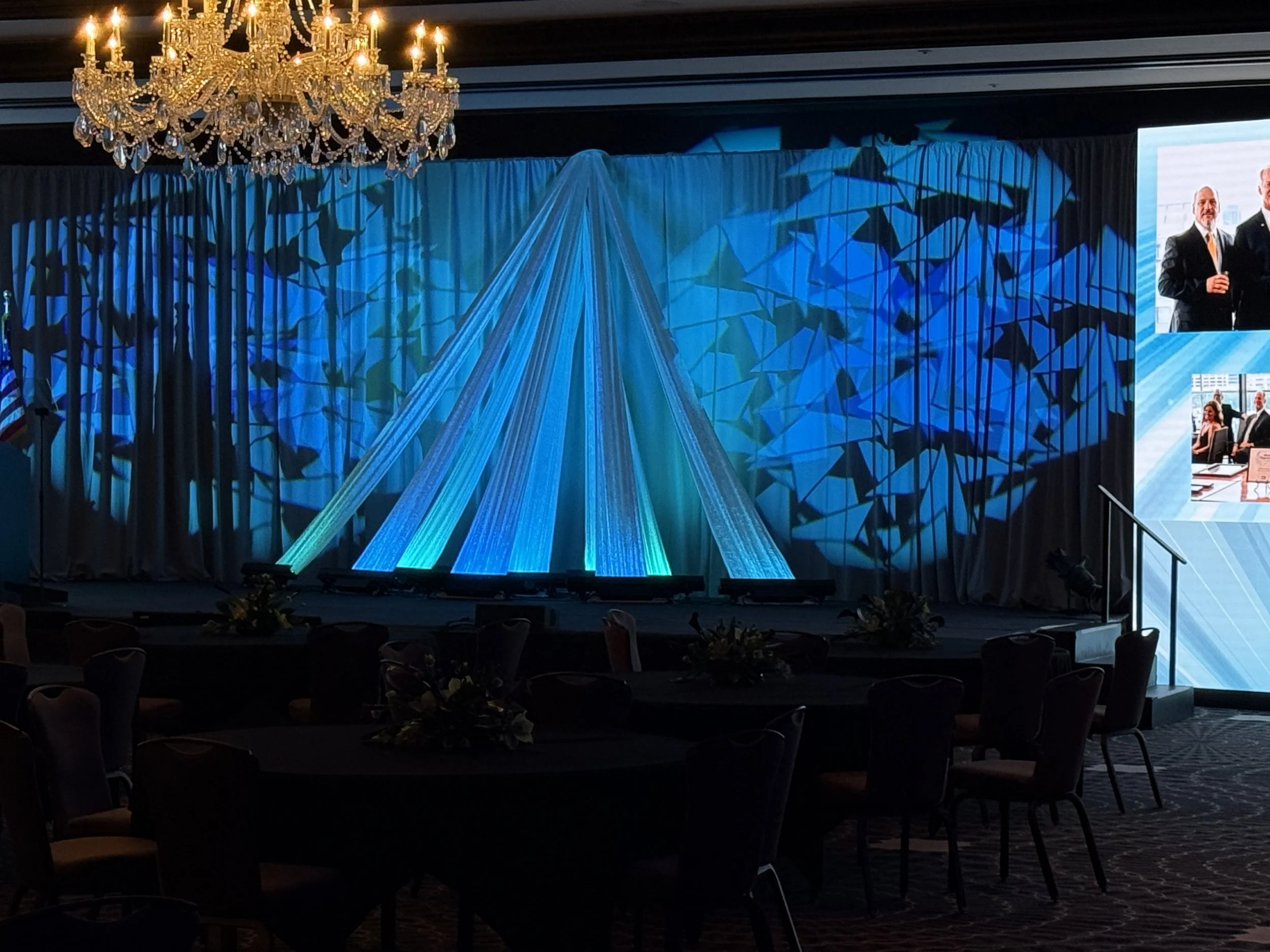 (4) massive 9' x 16' video screens with high-lumen projectors